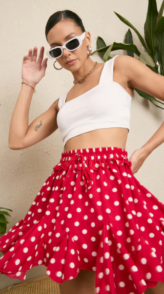 Mock Neck Crop Tank Top and Ruched Skirt