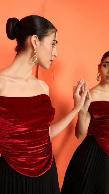 Stretchable Halter Neck Top And Skirt Set