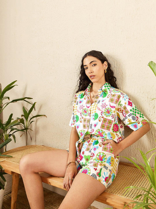Printed Shirt with Front Twist Skirt Co-ord Set