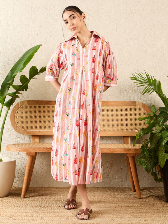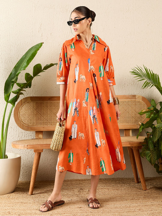 Collar Buttoned Down Midi Dress